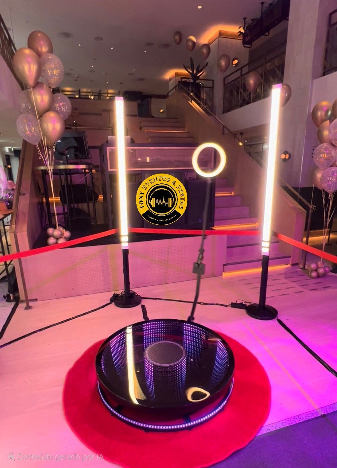 Com tecnologia de ponta, o Videobooth 360 oferece uma experiência única. Capture vídeos em 360 graus e crie memórias duradouras. Deixe a criatividade fluir com nossa seleção de adereços personalizáveis, garantindo vídeos divertidos e memoráveis.
