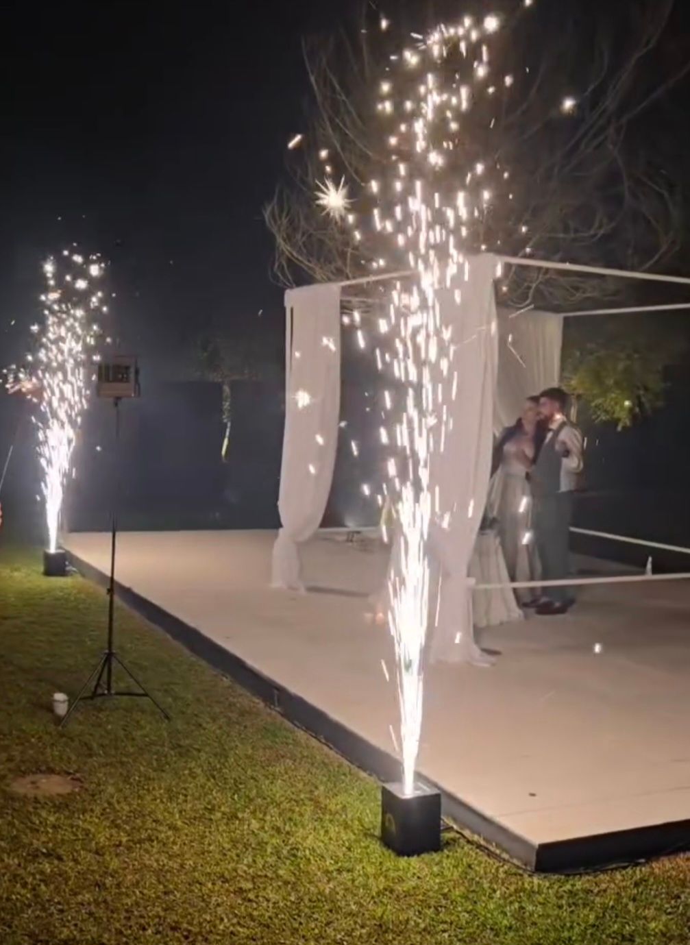 A máquina de fogo frio (sparkles) é um produto revolucionário que permite gerar uma “torre” de faíscas de 1 até 5 metros, e uma das grandes vantagens é que não necessita de licença de pirotecnia, podendo ser utilizada tanto no interior como no exterior.